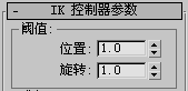 这些设置与“自定义”菜单 “首选项”“反向运动学”中的设置是一样的。它们在末端效应器和链上的最后一个链接之间设置位置和旋转更改的阈值。