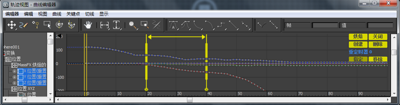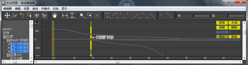 内嵌在“轨迹视图关键点”窗口中的重定时工具控制面板