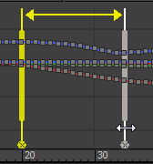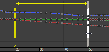 • 锁定启用该选项时,两个标记之间的时间跨度在长度上是固定的,这样在移动任一标记时将按相同的量移动另一个标记。结果是,移动了这两个标记之间的关键点,而没有更改包含的动画的长度。