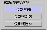 “移动/旋转/缩放”组框中的每个按钮在激活时会高亮显示。这样可以确定对象的哪一部分受“对齐”组中三个按钮(参见下文)以及主工具栏上“变换”和“对齐”命令的影响。