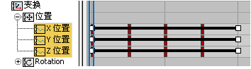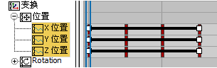 “摄影表”)。此外,如有必要,展开轨迹层次,以使“X 位置”、“Y 位置”和“Z 位置”轨迹可见。