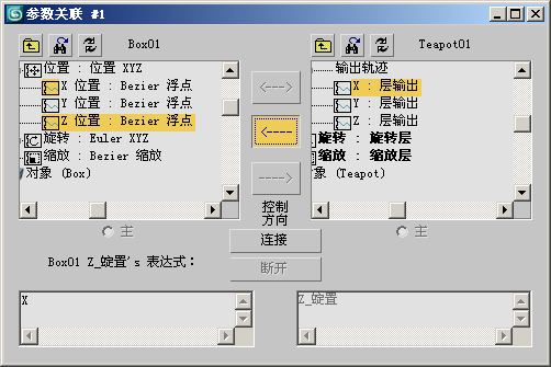 示例:要使用层控制器的输出轨迹将两个对象与参数相链接,请执行以下操作: