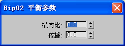 打开“平衡参数”对话框。当使用 Biped 上半身和下半身上不同的运动时,这些值会影响 Biped 骨盆和脊骨上的平衡补偿效果。在混合器中调整 Biped 平衡。