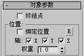使用权重和特定轴绑定控制为每一个绑定创建不同的权重,并指定被绑定的跟随对象所影响的轴。对“绑定位置”和“绑定方向”使用 R(相对)按钮来建立相对偏移。