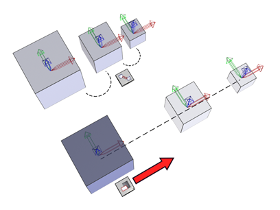 创建层次之后,可以缩放子级的位置,而不会更改单个对象的维。