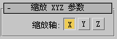 将“缩放 XYZ”控制器应用于对象后,“缩放 XYZ”参数出现在“运动”面板上的卷展栏中。