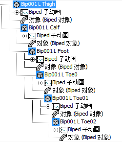 - 通过高亮显示源于该选择的所有对象在“层次”列表中的图标,来选中所有对象。同时也选中了折叠的子对象。