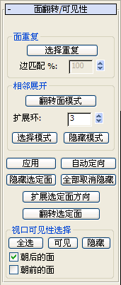 单击“全选”、“可见”或“隐藏”(参见上文)只影响主法线指向前方的面;即,指向观察点。