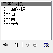在 3ds Max 中使用实体对象(同样还有连接对象和实体切割器对象)时,您将发现修改器堆栈提供了四个子对象层级:操作对象、边、面和元素。