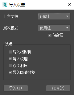 - 使用层:根据对象在导入的文件中所处的层,将它们放置在 3ds Max 中。