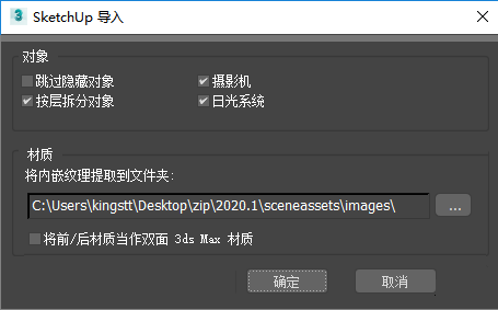 3ds Max 有两个不同的 SketchUp 文件导入器。旧版导入器可以导入从版本 6 到 SketchUp 2014 的 SketchUp 文件,新版默认导入器可以导入任意 SketchUp 文件。