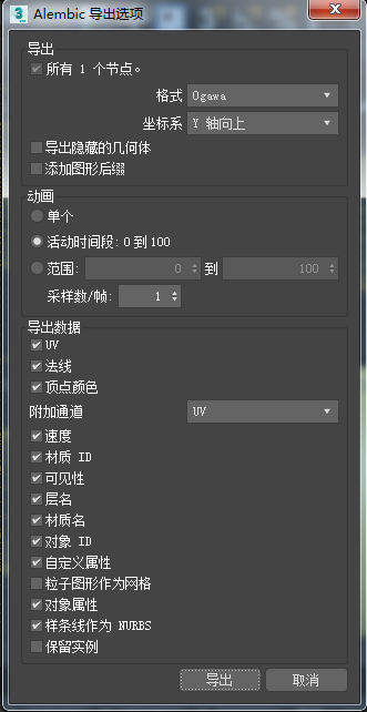 导出 Alembic 文件时,会自动导出以下内容的数据: