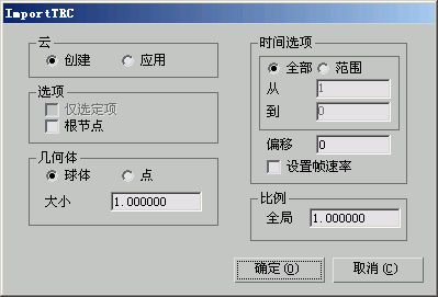 - 打开时,TRC 文件的帧速率将覆盖“时间配置”对话框中的当前帧速率。