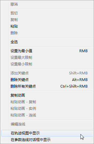 右键单击“帧值”字段,然后选择“在轨迹视图中显示”。