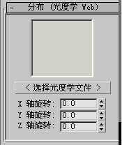 当使用光域网分布创建或选择光度学灯光时,“修改”面板上将显示“分布(光度学文件)”卷展栏。使用这些参数选择光域网文件并调整 web 的方向。