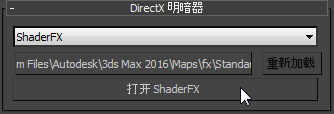 3. 在“DirectX 明暗器”卷展栏上,从下拉列表中选择“ShaderFX”,然后单击“打开 ShaderFX”。