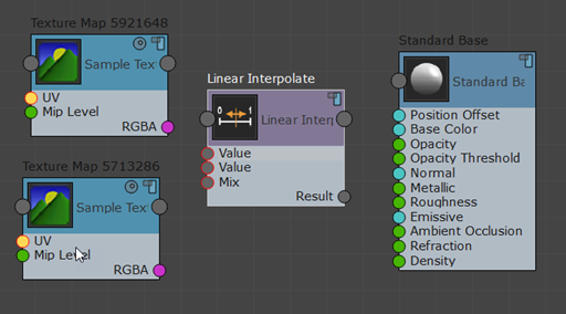 它类似于“ShaderFX 介绍性示例工作流”主题中的“使用顶点颜色节点混合纹理”示例,但此示例使用的是 Interactive“标准基础”节点及其关联的 ShaderFX 节点。
