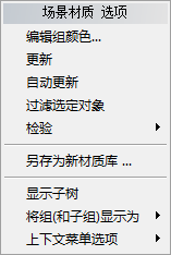 如果禁用其中的一个选项,则对应的材质和贴图(例如,当前环境中使用的贴图)将不再显示在“场景材质”组中。再次启用某一选项将再次显式对应的材质和贴图。