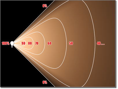 聚光灯分布像闪光灯一样投影聚焦的光束,这是在剧院中或桅灯下的聚光区。灯光的光束角度控制光束的主强度,区域角度控制光在主光束之外的“散落”。
