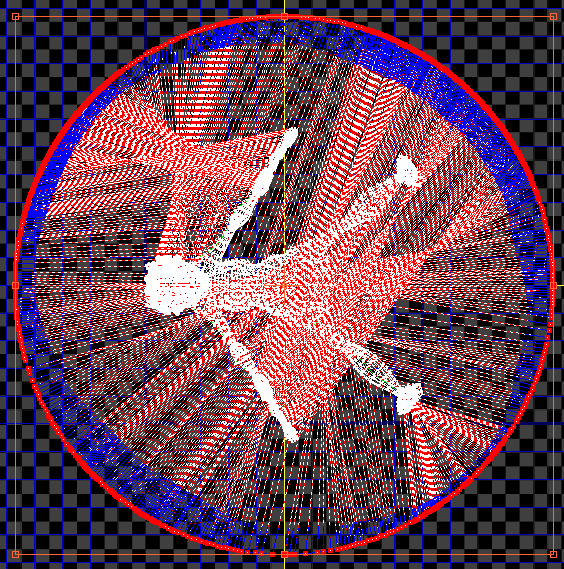 能够使您指定镜像轴的方向。该轴的形式是由三条黄线组成的 T。T 的腿表示使用“镜像拉伸器”时将被镜像的一侧(参见前面),水平线表示发生镜像的轴。默认值为 0.0。范围为 0.0 至 360.0。