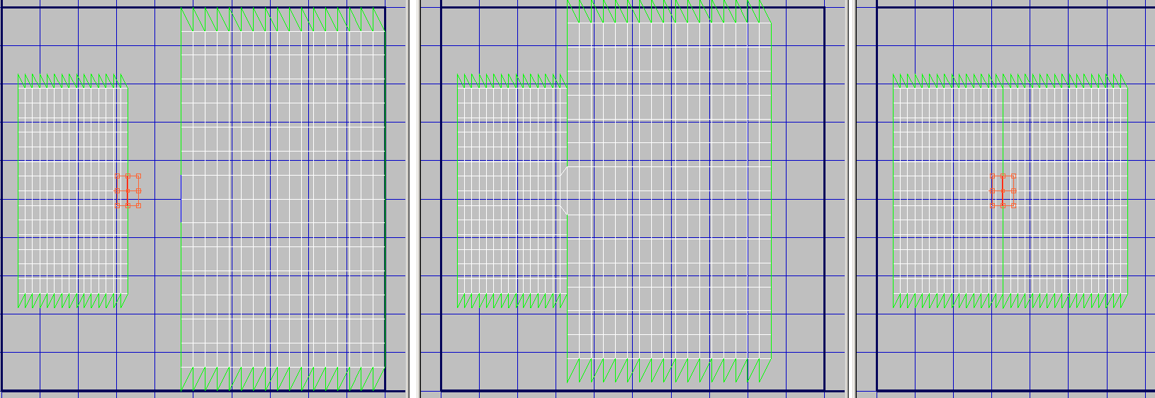 当“缩放群集”处于启用状态时,“偏移”设置 3ds Max 获取目标群集缩放的来源地。当“补偿”为 0 时,缩放完全源自于源簇上缝合的边。当“补偿”为 1 时,缩放完全源自于目标簇上缝合的边。当为中间值时,缩放在源簇和目标簇之间进行了平均。