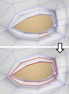 提示: 您可以在“顶点”和“多边形”子对象层级快速选择循环,方法是选择一个子对象,然后按 Shift 键并单击相同循环中另一个相同类型的子对象。