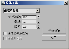 “松弛工具”对话框为以参数方式修改选定纹理坐标的间距提供了一个高级工具集,从而可以消除或最大限度减少纹理贴图的扭曲。