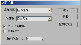 • 使用当前选择使用当前选择;当使用工具时不可以更改选择。如果当前选择是边或者面,“草图”使用所有附着所选择的子对象的顶点。