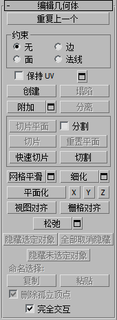 有关“选择”卷展栏设置的信息,请参见可编辑多边形。