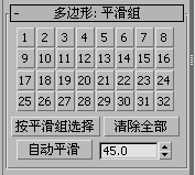 使用这些控件,可以向不同的平滑组分配选定的多边形,还可以按照平滑组选择多边形。