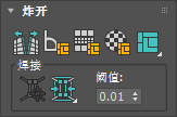 设置焊接阈值:使用“焊接选定项”和“焊接选定的子对象”(请参见上文)的焊接生效的半径。该值使用 UV 空间距离。默认设置为 0.01。范围为 0 至 10。