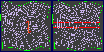 通过“剥”工具可以实现展开纹理坐标的 LSCM(最小二乘法共形贴图)方法,以轻松直观地展平复杂的曲面。此卷展栏还包括与“剥”功能的“锁定”相关的工具。使用“剥”功能时,当其余顶点移动时,锁定顶点始终固定不动。