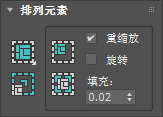 垂直对齐到轴垂直排列选定子对象,并将它们水平移动到轴位置。