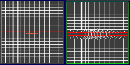 “水平间隔”最适合在“边”层级上使用。在“顶点”层级上也可以使用,但会在内部将顶点选择转换为边。因此,为避免在“顶点”层级上工作时出现不明确的结果,请针对选定顶点的单个循环使用。