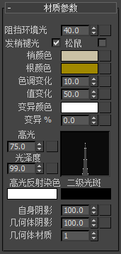 为获取和贴图颜色最接近的结果,可将“梢颜色”和“根颜色”设置为白色。此外,设置为其他颜色将给贴图着色。