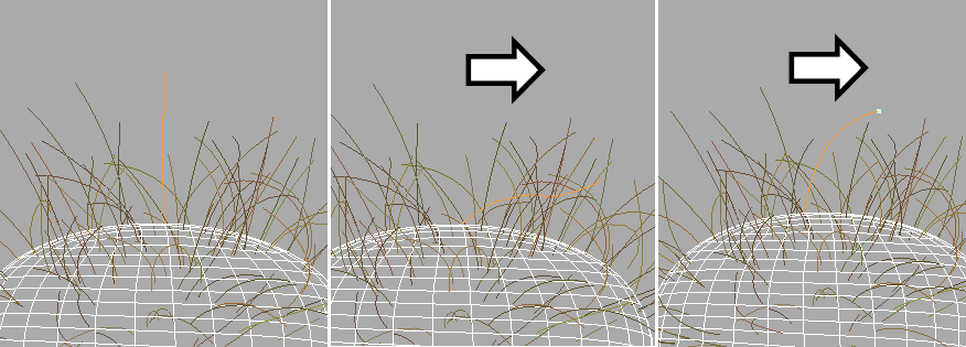 以光标位置为中心(位于发梳中心)旋转导向头发顶点。