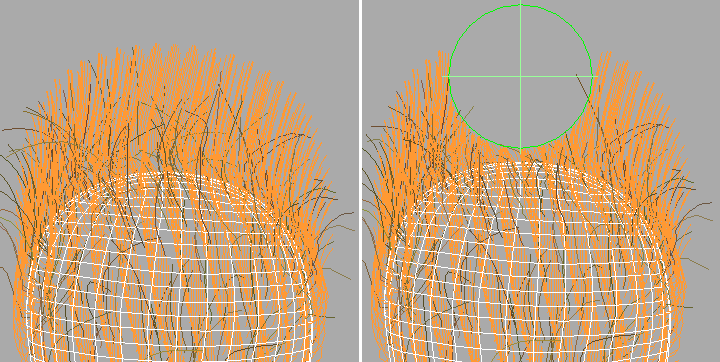 右:使用“站立”工具设计发型之后导向头发(位于右侧)