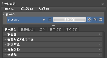 - 使用此面板可以调整各个解算器参数并查看与模拟关联的场景对象: