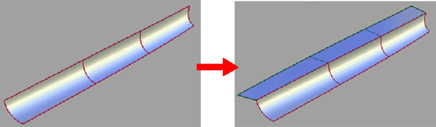 沿拉伸方向或以相对于原始曲面的某个角度,从一组曲面曲线创建一个或多个曲面。