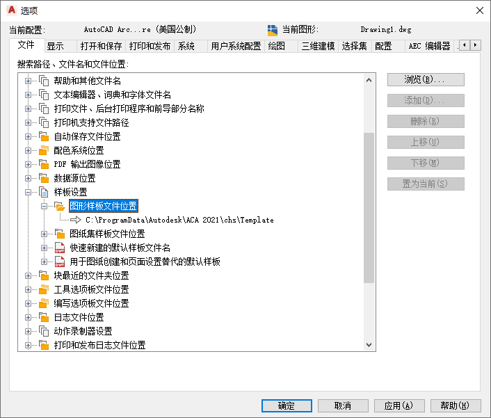 在“选项”对话框中指定样板文件位置。