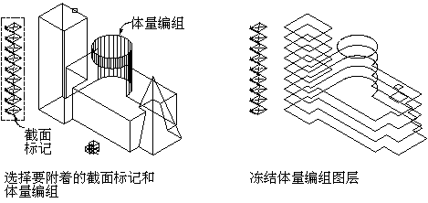 使用以下步骤可以将体量元素或体量编组附着到截面,以创建建筑楼板。可以冻结包含体量元素和体量编组的图层,仅显示截面。