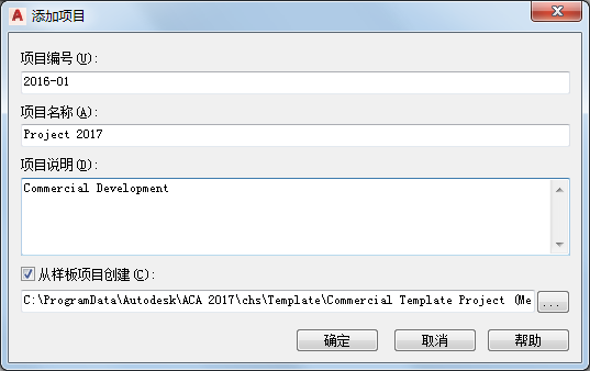 从“添加项目”对话框中指定样板项目。这是唯一可以执行该操作的时候。创建新项目后,所指定样板项目中的设置和文件都会复制到新项目中。