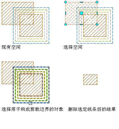 如果使具有样式定义的边界偏移的空间相交,则两个空间的基准边界将会相交,而在第一个空间的样式中定义的边界偏移将应用于生成的相交空间。