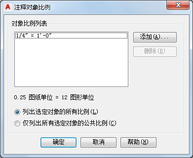 - 在“注释对象比例”对话框中,单击“添加”。