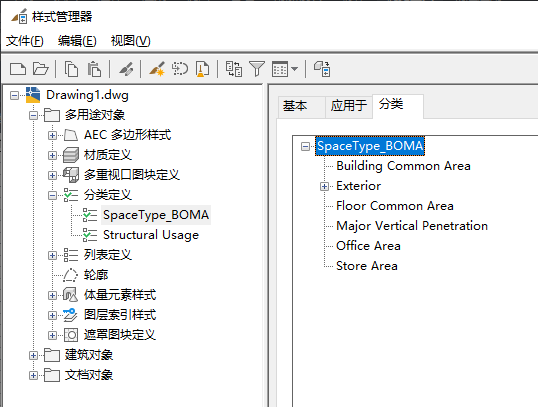 如果希望您的标准可处理分类,那么,在为分类名称创建资源集之后,需要向标准中添加一个类型为 AecSpaceOffsetClassification 的对象。此类将处理标准的所有分类相关功能,以及所实施的规则内所有的分类相关功能。