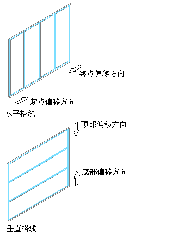 | 指定幕墙基线的起点与水平格线中第一个单元的起点之间的距离 | 输入“起点偏移”值。 |