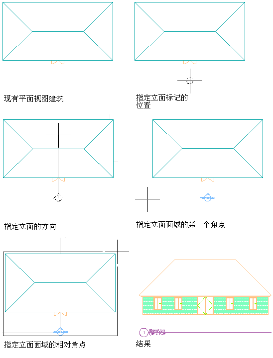 创建立面的第一个步骤是:根据建筑模型绘制立面线。立面线定义建筑模型的立面视图范围。