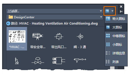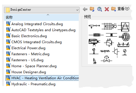 “DesignCenter”文件夹中的每个图形都包含一组相关的块定义。