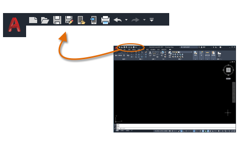 AutoCAD 在应用程序的顶部包含标准选项卡式功能区。您可以从“常用”选项卡访问本手册中出现的几乎所有的命令。此外,下面显示的“快速访问”工具栏包括熟悉的命令,如“新建”、“打开”、“保存”、“打印”和“放弃”。