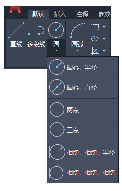 CIRCLE 命令的默认选项需要您指定中心点和半径。